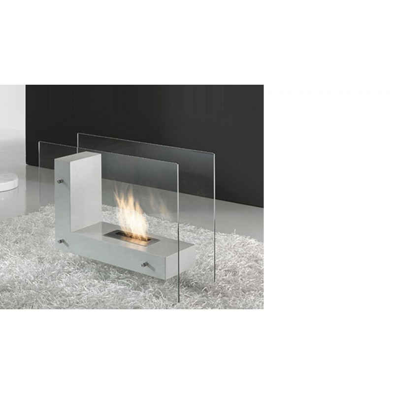 L'esthétique est au rendez vous avec la cheminée éthanol design Luna. Exécutée sous la forme d'un "L" renversé et taillé dans l'acier, Luna se veut aérienne : ses deux verres parefeu l'encadrent intégralement et sont reliés au corps par un élégant système d'entretoise en acier inoxydable. On pourra la choisir blanche brillante, noire mate ou rouge brillant suivant la déco que l'on souhaite réaliser.